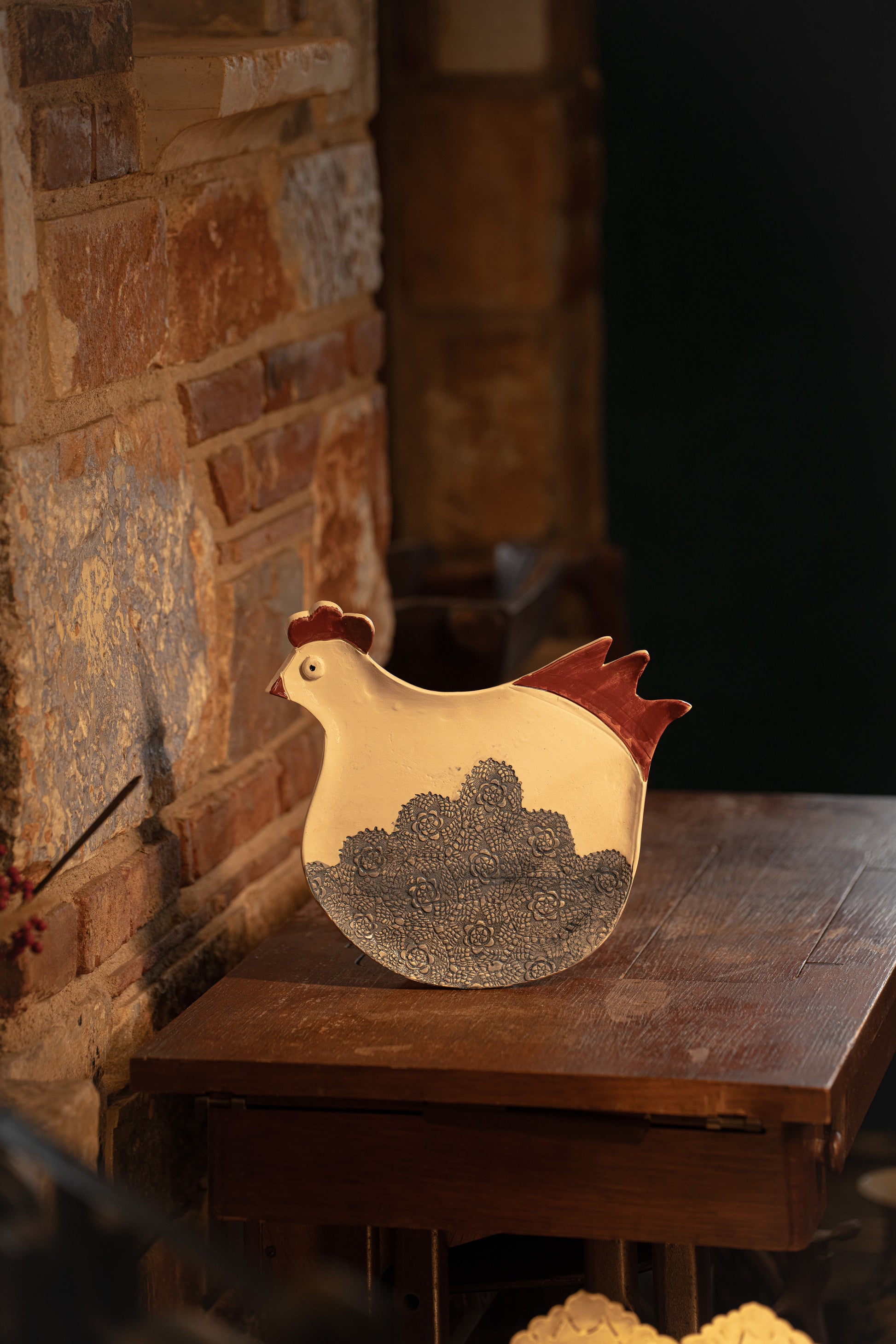 Πιατέλα από πηλό stoneware με αποτύπωση πλεκτού από τη συλλογή μας.