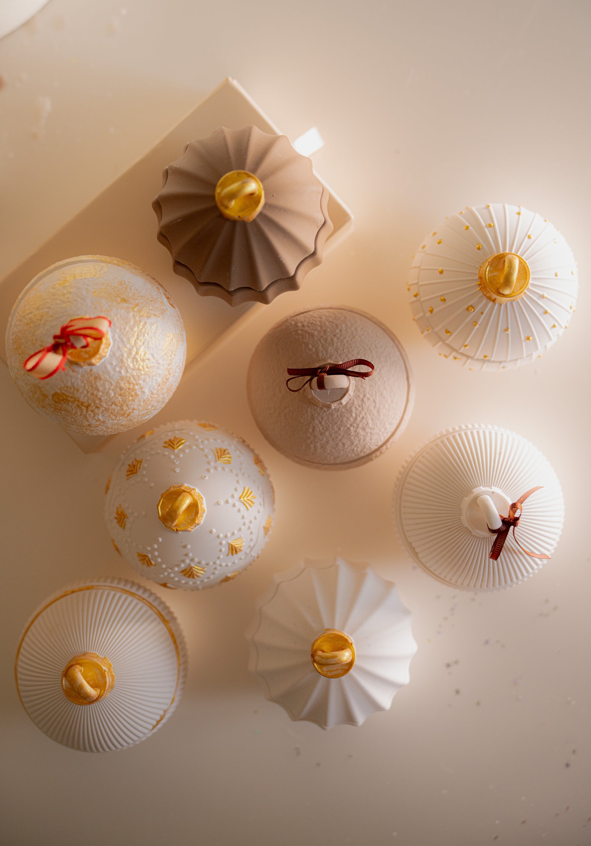 Handcrafted from eco-resin, these balls contain 130gr-210gr of soy wax along with our childhood dreams — a way to see the world through the magic of a Christmas ball.